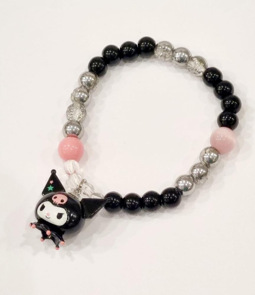 اسورة كروميو مكونة من الخرز الاسود والفضي والوردي الفاتح مناسبة للفتيات