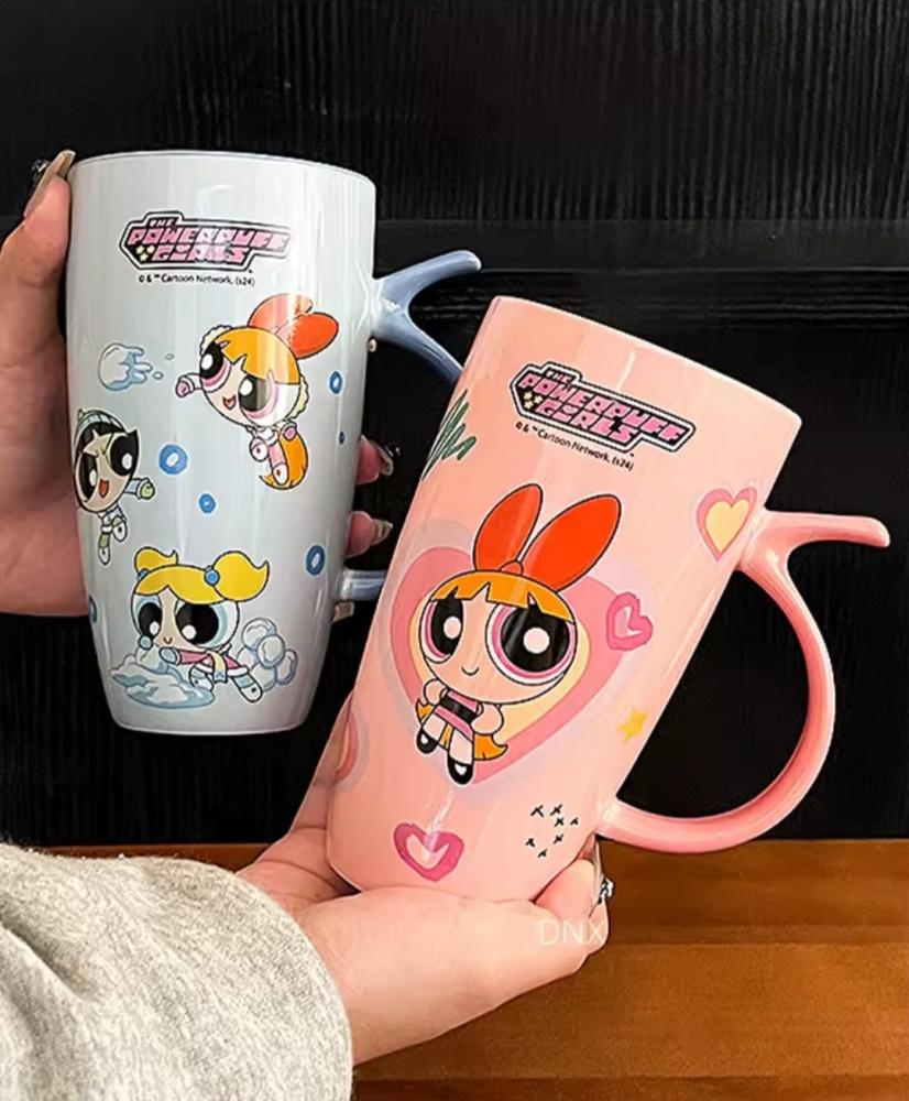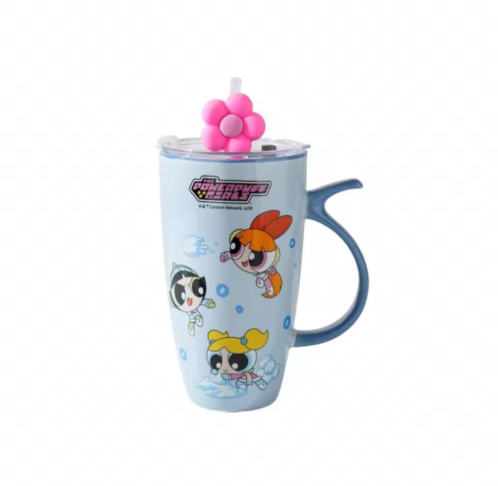 كوب ازرق سماوي شخصية فتيات القوة من السيراميك ذا تصميم حديث ومتميز وجودة عالية 450 ملل
